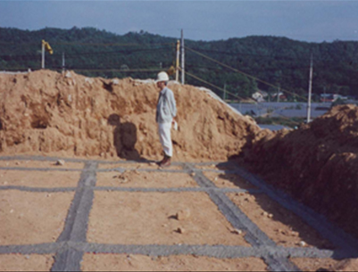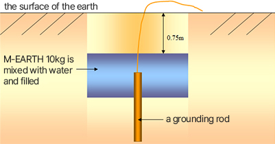 Ground rod electrodes (L:1.0m to 3.0m) are most often used for various ground works. Ground rod electrodes are easy to construct, and in particular, parallel connection type ground rod electrodes are constructed in connection until the desired ground resistance is obtained. After plating a pit (diameter 30-50 cm) as shown in the figure, a ground copper rod is type, and a mixed M-EARTH is applied.