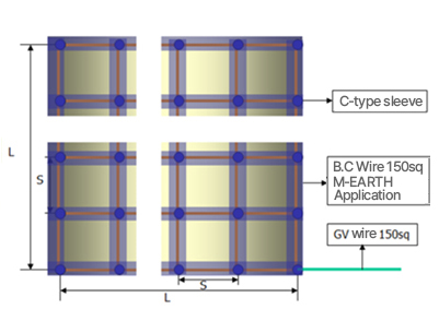 A large ground electrode is formed by connecting a plurality of buried ground wires to each other in a lattice shape. In particular, it is used in power plants, substations, telephone stations, intelligent buildings, and hospitals that require low ground resistance. In addition, mash, ground rods, and copper plates are used.